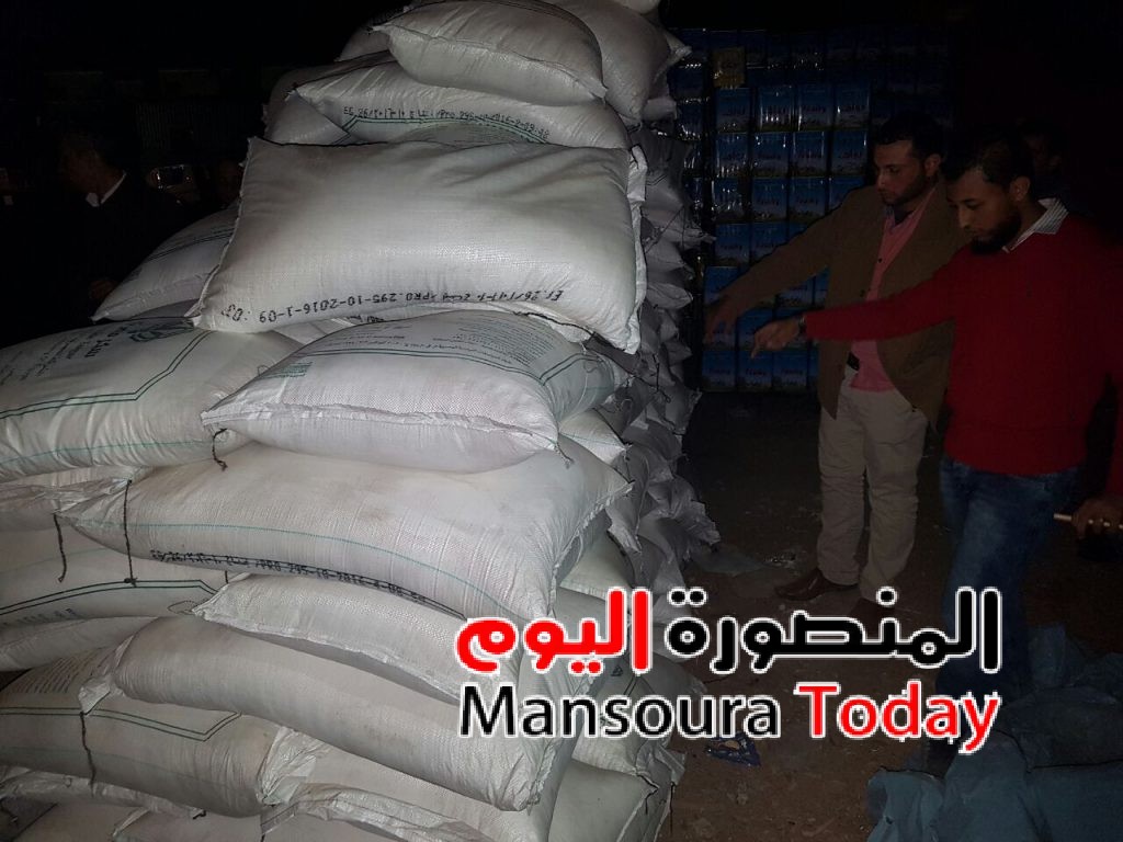 قامت حملة مكبرة تضم مسئولي مديريتي الصحة والتموين والإدارة العامة لمباحث التموين ومباحث مركز شرطة ميت غمر وفريق العمل الميداني لحي غرب بالتوجه إلى قرية شنيسة مركز أجا حيث قامت بمصادرة عدد ١١ طن سكر تم ضبطها بأحد المخازن وتم تحريزها وتسليمها للنيابة العامة للتصرف واتخاذ الاجراءات القانونية اللازمة .