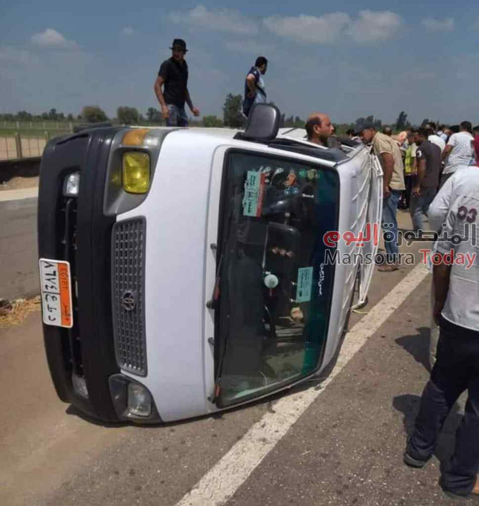 علي الفور انتقل رجال المباحث الي مكان البلاغ وتبين حدوث تصادم بين ميكروباص وسيارة ملاكي ادي الي إنقلاب الميكروباص ،وحدوث إصابات بسيطة لبعض الركاب ،تم نقلهم إلى مستشفى بلقاس العام لتلقي الإسعافات الأولية والعلاج اللازم.
