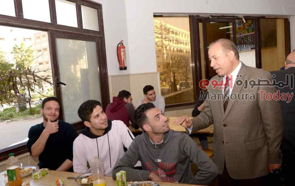 وأكد رئيس الجامعة على حرص إدارة الجامعة على المراقبة المستمرة لجودة الطعام المقدم للطلاب للتأكد من سلامته من خلال لجان متخصصة من كلية الطب البيطرى، كما وعد الطلاب بحل أى مشكلة تواجههم فيما يخص موضوع التغذية.