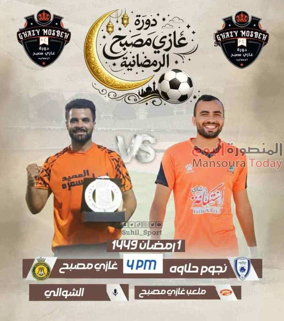 يتم اليوم افتتاح دوره غازى مصبح الرمضانية الكبرى التي تعد من أقدم الدورات الرمضانية بمحافظة الدقهلية ، وتقام بانتظام كل عام منذ 10 سنوات ، هذه الدورة هي الحادية عشر.