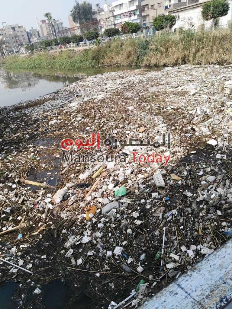 بالصور ..بحر منية النصر بمحافظة الدقهلية سلة للقمامة وسط تجاهل المسئولين