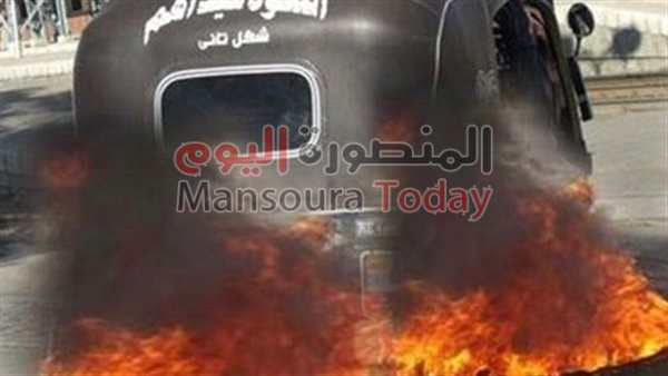 انتقل مأمور وضباط وحدة مباحث قسم ثاني، وقوات الحماية المدنية، لمكان الواقعة وتم السيطرة على الحريق، وبالفحص تبين إحتراق الجرء الأعلى للتوك توك رقم 5974 دقهلية، ملك المدعو إسلام.ش. المقيم بعزبة الشال، دون وقوع إصابات.