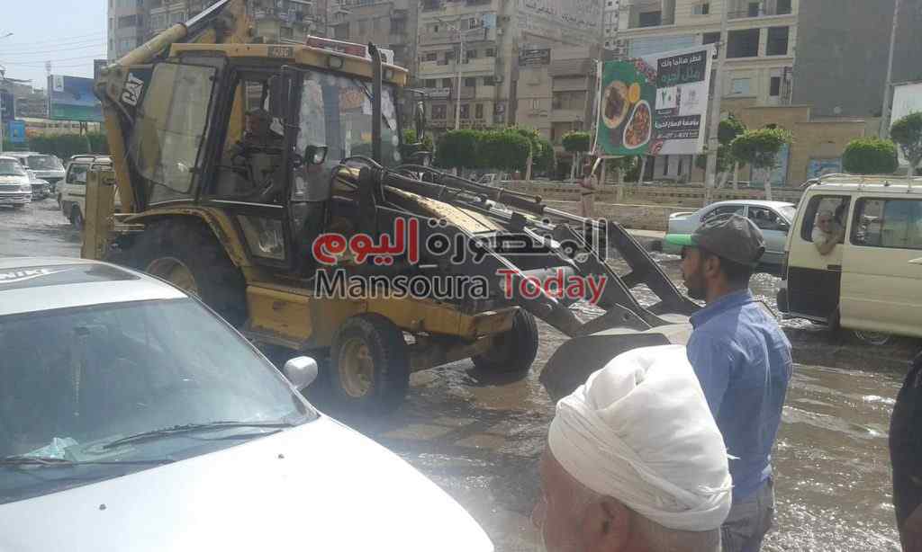 وأمر حسام عبداللطيف رئيس حى شرق المنصورة بالتوجه على الفور إلى مكان الكسر وتوجه محمد حلمى مدير إدارة الكوارث بعد تبليغ شبكة المياه والصرف الصحى ويتم التعامل بسحب المياة بسيارة الحى حتى يتمكنوا من تصليح الكسر ويتم التعامل معه .