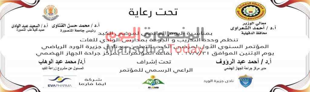 المؤتمر السنوى الاول لمرضى الكبد 31 يوليو الجارى بقاعة المؤتمرات بمركز جراحة الجهاز الهضمى بالمنصورة