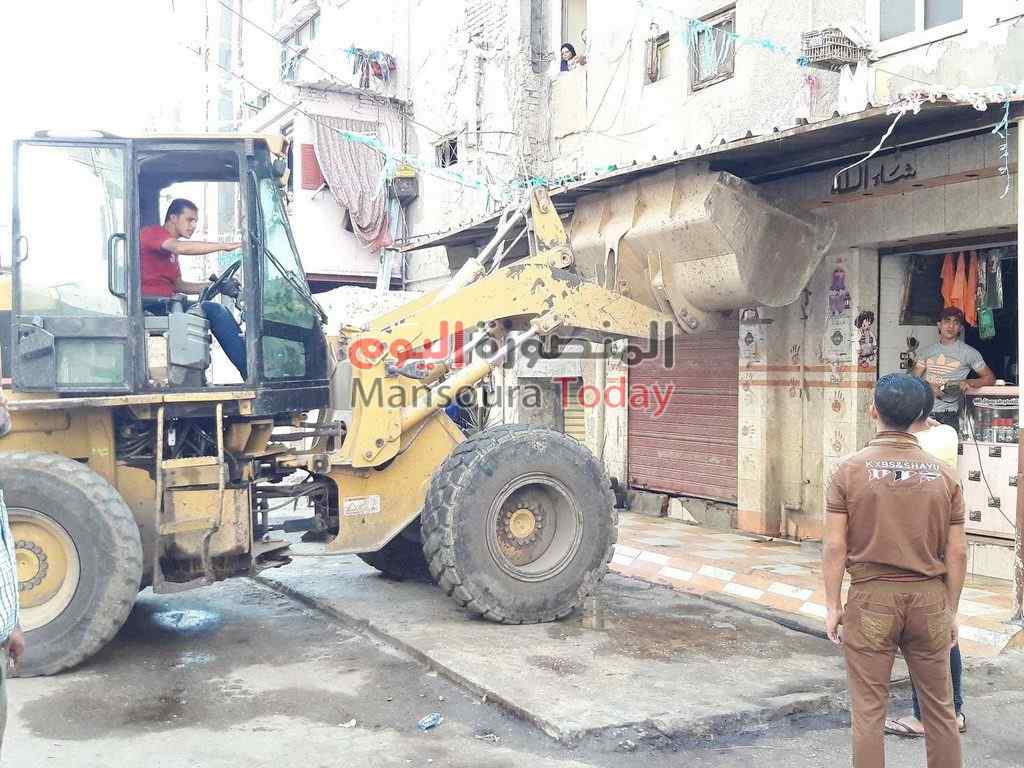 بالصور .. إزالة مغسلة سيارات بالمنصورة لعدم ترخيصها ومخالفتها للقانون