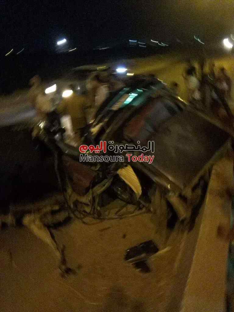 بالصور..مصرع شخص وإصابة 3 آخرين في حادث انقلاب سيارة علي طريق “المنصورة _شربين “