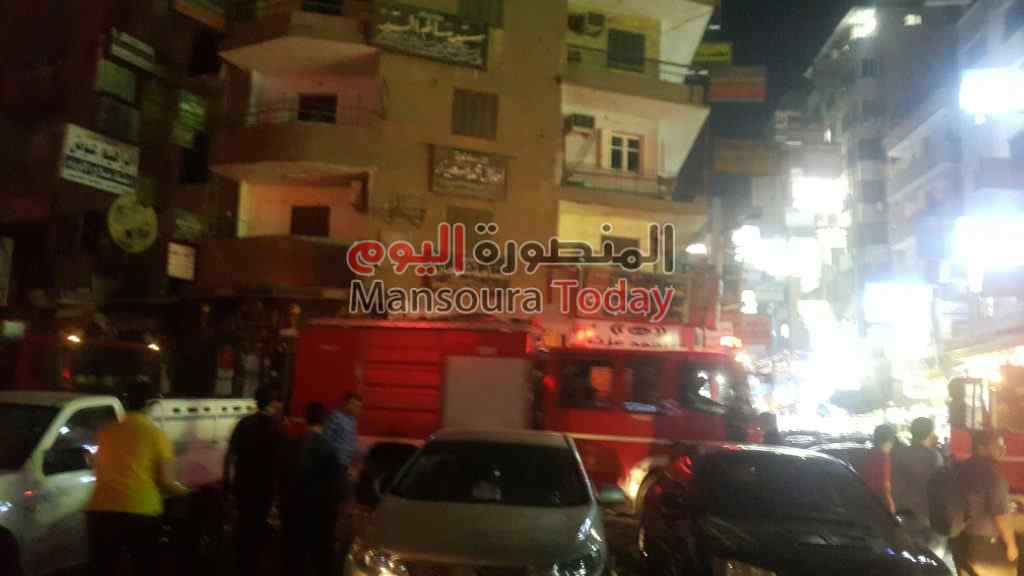 بالصور.. السيطرة علي حريق هائل داخل محل بالسكة الجديدة بالمنصورة