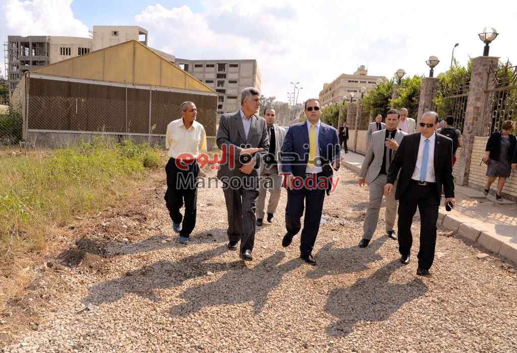 بالصور .. رئيس جامعة المنصورة يتفقد ممر المشاة الجديد “