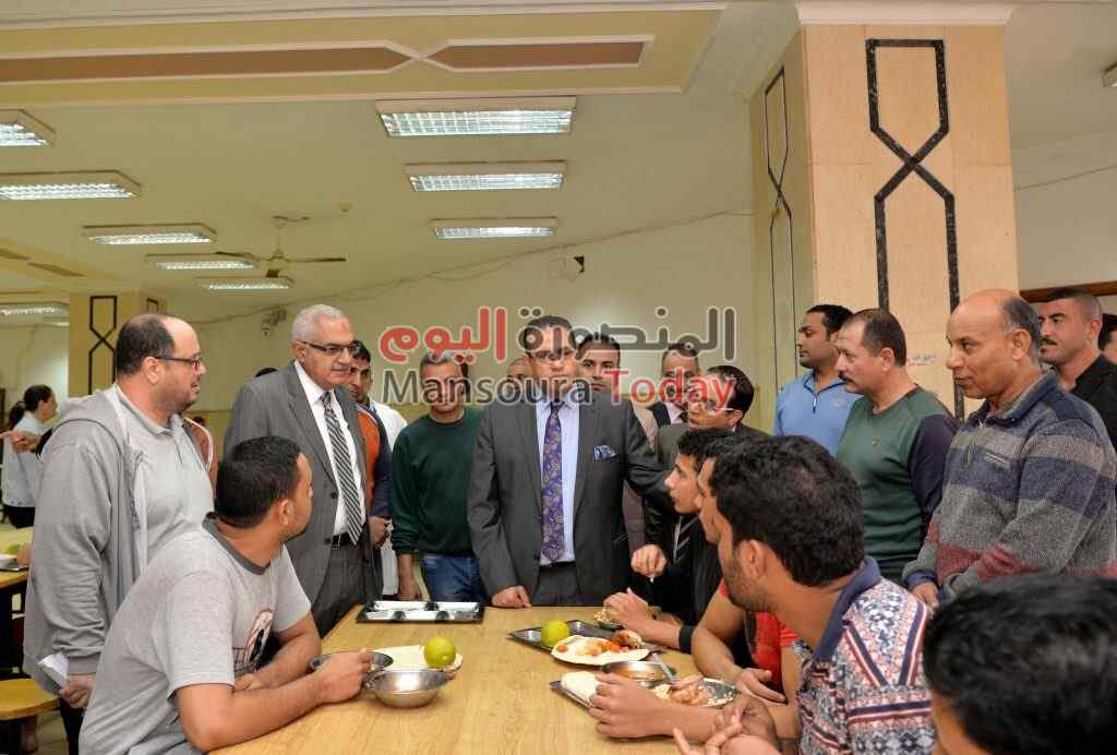 رئيس جامعة المنصورة يقوم بزيارة مفاجئة للمدن الجامعية للطلاب أثناء وجبة الغذاء للتعرف علي جودته