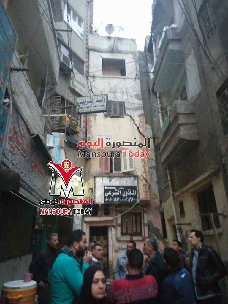بالصور.. انهيار جزئي لعقار في المنصورة