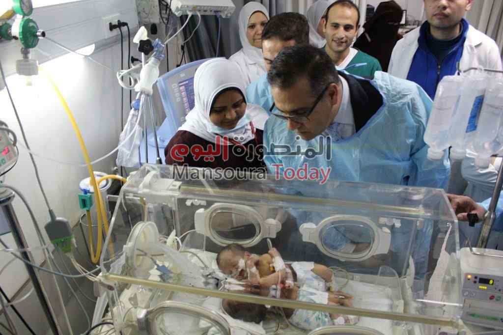 بالصور.. رئيس جامعة المنصورة يتفقد الخدمات الطبية بمستشفى الأطفال
