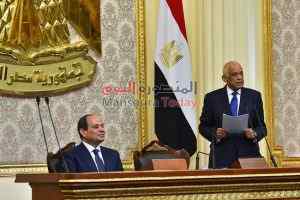 فيما رحب الدكتور على عبد العال، بالرئيس عبد الفتاح السيسى، تحت قبة البرلمان، مضيفًا أن مجلس النواب مرآة الشعب وضميره، الذى أدرك بوعيه وحسه أن تجديد الثقة فى قيادتكم صار ضرورة ملحة للعبور بمصر إلى مرفأ الأمن والأمان .
