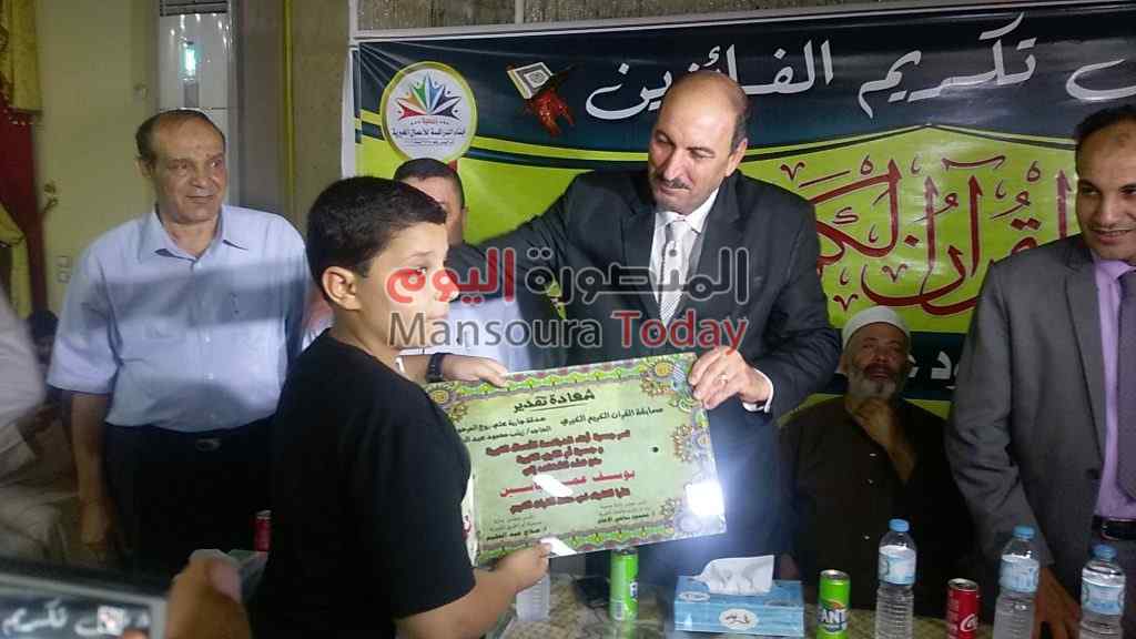 بالصور. تكريم الفائزين بمسابقة القرآن الكريم بمنية النصر