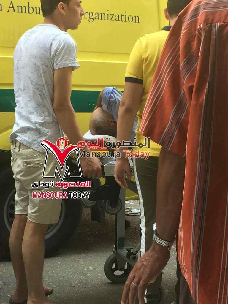 أصيب عامل نظافة إثر سقوطه من أعلي سيارة النظافة التابعة لحي شرق المنصورة ، أثناء وجوده بشارع بنك مصر بمدينة المنصورة .