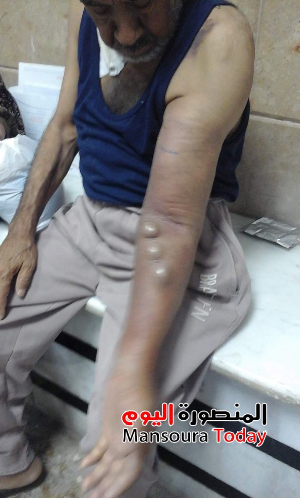 “احنا في مصيبه جديدة بمجزه منيه النصر هذه ليست مستشفى، الرجل اللى انتوا شايفينه فى الصوره ده من منيه النصر ورجل بسيط ولا يوجد لديه اولاد وليس لديه اى دخل سوى 400 جنيه دخل من الشئون الاجتماعية، وهو مريض بالفشل الكلوى ويقوم باجراء متابعه غسيل للكله داخل مجزره منيه النصر يوم ويوم ومن ثلاثه اسابيع قامت ممرضه بتركيب جهاز الخاص بالغسيل خطا مما ادى الى ورم ذراع هذا المسكين بهذه الطريقه وعندما ذهب لمدير مجزره منيه النصر، الدكتور حسام ابو النجا وحكى له ماحدث فكان رد الدكتور عليه _طيب عايزنى اعملك ايه _وعندما ذهب للاستقبال ليلا بعد مااشتد عليه الالم وجدنا الدكاتره جالسين يضحكوا ومبسوطين وكان موجود دكتور اوعيه دمويه فى الاستقبال ويعلم بحالته فقال لنا انه محتاج لعمليه؛ فقولت له مافيش مشكله اعمله الازم فقالى مافيش هنا امكانيات تعال ليا بكره المستشفى الخاص وانا اعملها ب1500 جنيه ودخل جلس مع الدكاتره وسابوا الحاله وبعد مشاكل معاهم قاموا بتحويلنا لمستشفى الطوارى بالمنصوره وبعد عمل الاشاعات والتحاليل وجدنا المصيبه الكبرى وهى انه سوف يتم بتر زراع هذا المسكين وهو الان فى انتظار دخول العمليات، فمن المسئول عن عجز هذا الرجل ومن سيحاسب على عجزه ومن سيعوضه عن زراع الذى سيفقده؟؟؟؟؟؟وللاسف احنا عندنا نواب فى مجلس الشعب وجودهم مثل عدمه وجودهم ولاحياه لمن تنادى فارجو منكم جميعا النشر على اوسع نطاق كى نقف المهزله الموجوده بمجزره منيه النصر”