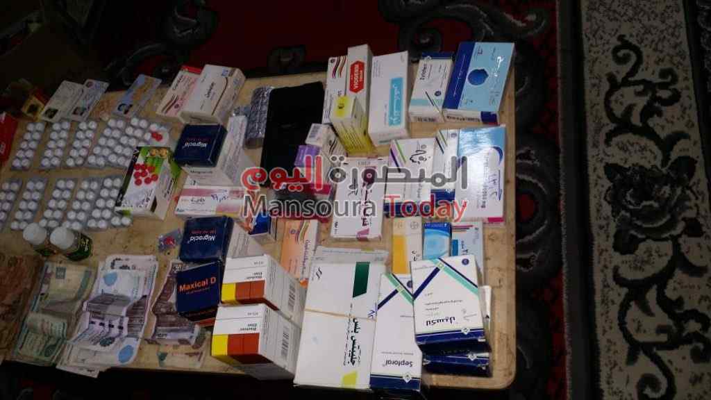 وبتفتيش إحدى الصيدليات بمدينة المنصورة وجد مخالفات داخل الصيدلية ، أدوية مخدرة بدون فواتير وأدوية صحة و سكان ، وأدوية مهربة و غير مسجلة بوزارة الصحة .