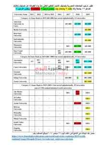 وقد صنفت جامعة المنصورة لعام 2019 م فى الترتيب 601-800 ، حيث صنفت الجامعة فى التصنيف لعام 2018 م فى الترتيب من 801-1000 .