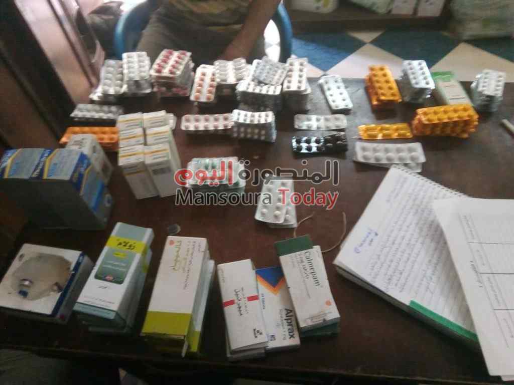 كما تم المرور على صيدلية بمدينة السنبلاوين و قد أسفر التفتيش عن ضبط عدد 14 صنف أدوية مؤثرة على الحالة النفسية و مجهولة المصدر بدون فواتير باجمالى 422 قرص ، ضبط عدد 20 صنف ادوية مهربة و غير مسجلة بوزارة الصحة و مجهولة المصدر باجمالى 386 قرص .