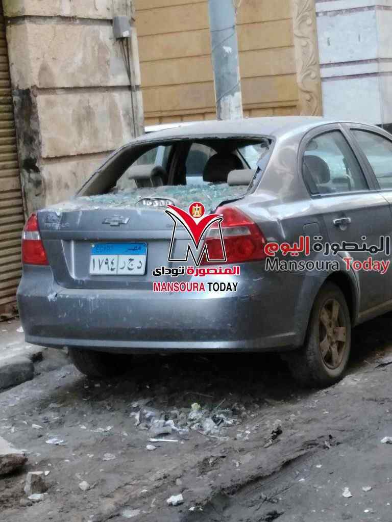 وتبين انهيار بلكونة منزل مكون من أربع طوابق بشارع الحسينية بمدينة المنصورة ، مما أدي لتحطم سيارتين إحداهما ملاكي والأخري نصف نقل أثناء وقوفهم في الشارع.