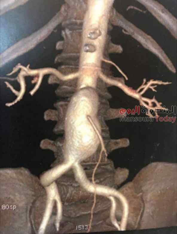 قام فريق من قسم جراحة الأوعية الدموية بمستشفي المنصورة الجامعي برئاسة الدكتور مسعد سليمان بإجراء أول حالة لتمدد بشريان الأورطي بالقسطرة التداخلية بتقنية الدعامات المغطاة وبدون تدخل جراحي وتعد قفزه في هذا المجال بما يواكب التوجه العالمي من تفعيل التدخل غير الجراحي لما يحمله من تقليل المضاعفات وسرعه عوده المريض الي عمله خاصه للحالات التي يصاحبها قصور بأجهزه الجسم الاخري .