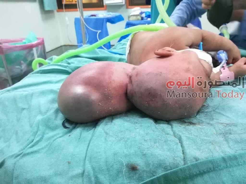 أجري فريق جراحي بمستشفي المنصورة جراحة في حالة تعد من الحالات النادرة، لطفل يولد بكيس مائي كبير يحتوي على السائل النخاعي ونقص في تكوين عظام الجمجمة من الجهة الخلفية، والتي تعد من العيوب التكوينية للجنين داخل الرحم، والتي تهدد إستمرار حياته أو حدوث مضاعفات خطيرة على الطفل، وبعد أن خضع الطفل إلى مجموعة من الفحوصات من الأشعة المقطعية وأشعة الرنين المغناطيسي والتحاليل الطبية الشاملة، وفي الشهر الثاني من العمر .