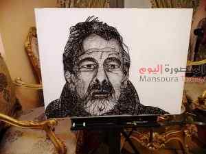 وأضافت: ” حياتنا مثل الخيوط مشبكة ببعضها والخيط بالنسبة لي حياة داخلها تفاصيل كثيرة سواء حزن أو فرح، لذا فكرت في رسم الفنان جميل راتب بالخيوط والمسامير لأنه بعد وفاته وتبرعه بأملاكه لمستشفي أورام ، لم أجد أحد من الرسامين يهتم به أو يرسمه ، ورسمتها بالمسامير والخيوط وكانت أول رسمه من نوعها ظل ونور ولوحة تابلوه ، وأخذت وقت طويل لأنها أول تجربة لي ولم يعلمني أحد ولم ينصحني بها أحد وبدأت أتعلم وضع المسامير وتثبيتها علي الخشب وبدأت أشتغل بالخيوط السودا وتحريكها سواء خيوط رفيعة أو سميكة واستغلها في الظل والنور المرتبط بالبورتريه واستمرت حوالي أسبوعين حتي انتهيت منها ، وشاركت بها في معرض ووجدت تشجيع من الموجودين وعرفوا قيمها وهو ماأشعرني بسعادة كبيرة.