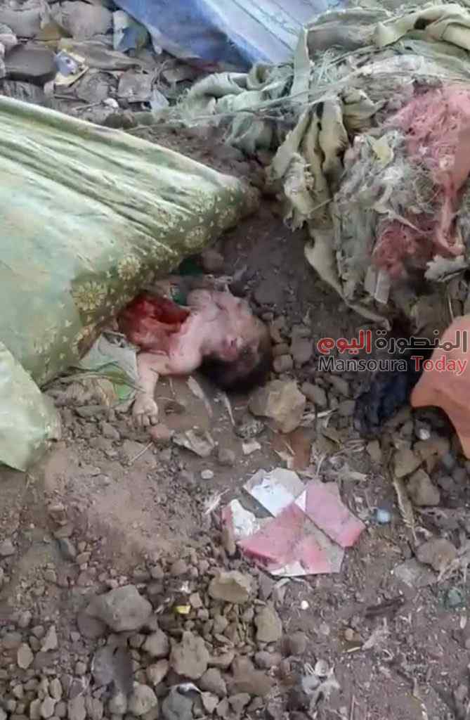 وكان اللواء فاضل عمار مدير أمن الدقهلية ، قد تلقى اخطارا من اللواء سيد سلطان مدير المباحث الجنائية، يفيد بورود بلاغ لمامور مركز شرطة ميت غمر من اهالى قرية كفر سرنجا التابعه للمركز بعثورهم على جثة طفل حديث الولاده وسط القمامه بمنطقة جسر النيل تنهشها الكلاب وقاموا بابعاد الكلاب عنها وتغطيتها بقماشة وتراب لحين حضور الشرطة.