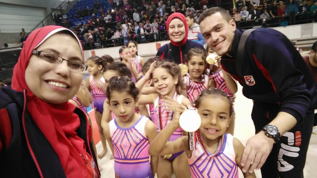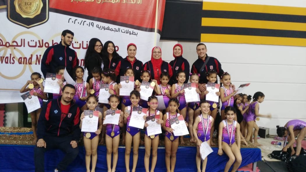 و مثل الفريق كلامن :_ليلي أبو المجد ، خديجة خالد، كارمة احمد فهمي ، دارين أحمد ، مريم امير ، يارا محمود ، رحمة طاهر ، بمشاركة اللاعبات سارة محمود ، جوليا احمد ، سولين وسام ، كارما احمد ، ساجدة حلمي ،ليلي عمرو ، لارا باهي ،تولاي إسلام ،جوري نور الدين ، جميلة محمد ، زينة محمد ، كارما محمد.وتسلم أبطال الأهلي الميداليات بحضور مسئولي الاتحاد المصري للجمباز والدكتور ياسر عبد العال نائب مدير عام النشاط الرياضي للشئون المالية والادارية في الأهلي ودكتور محمد فؤاد رئيس جهاز الجمباز بالنادي الاهلي والذي اعرب عن سعادته بتحقيق المركز الأول علي صعيد الناشئين والناشئات في بطولة الجمهورية، مؤكدا حرصه علي دعم الناشئين في الأعمار المختلفة لتحقيق البطولات.ويضم الجهاز الفني للفريق كلًا من:الدكتور محمد فؤاد المدير الفني للقطاع، ومها حنفي مدربًا، وأحمد مسعد طبيبا ، ومصطفى كامل، إداريًا. د. مها حنفي مدير اكاديميه الجمباز،ومها نجيب المدير الفني العام لجهاز الجمباز ،كابتن محمد مصطفي،كابتن شيماء عيد،كابتن إسلام عبد الرحمن،كابتن زينا أشرف ، وأحمد مسعد طبيبًا ، ومصطفي كامل اداريا .