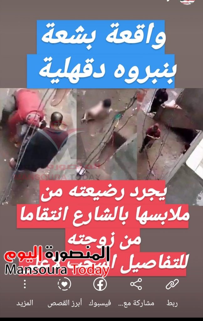 وتقدم أحد الأهالي ببلاغ إلى قسم شرطة دكرنس، يفيد قيام أحد الأشخاص بتجريد طفلة صغيرة من ملابسها، وإلقائها في الشارع، وسط صرخات وبكاء الجيران، الذين رفعوا كاميرات هواتفهم يلتقطون ذلك المشهد
