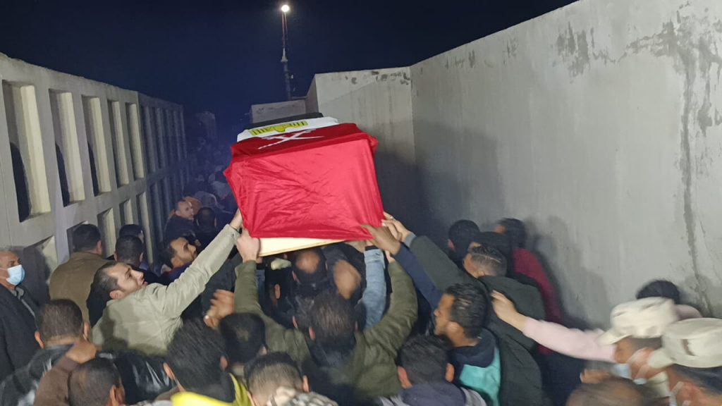 خرج الجثمان من سيارة الإسعاف ملفوف بعلم مصر لتشييعه إلى مثواه الأخير، وردد المشاركون فى الجنازة عبارات “لاإله إلا الله الشهيد حبيب الله، وسط حالة من الحزن الشديد على الفقيد.