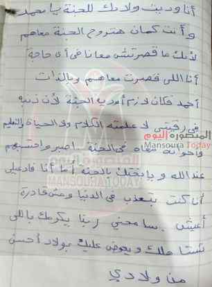 وتركت رسالة إلى زوجها وهو يعمل بالخارج أولادك فى الجنة يامحمد وعمرك ماقصرت معنا فى شيىء