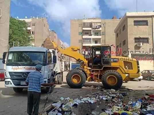 بالصور رفع 290 طن قمامة و20طن اتربة من الشوارع والميادين والطرق الرئيسية بالمنصوره