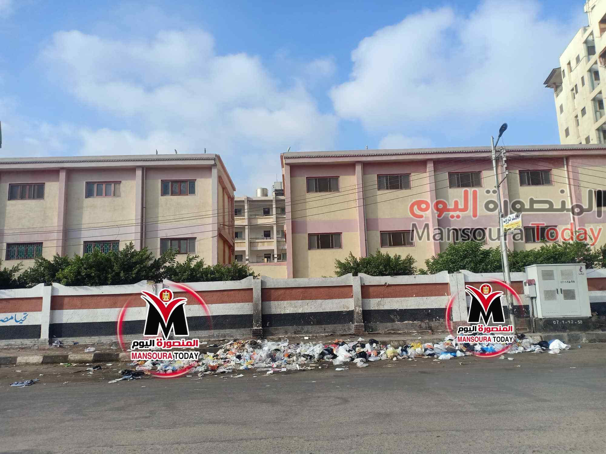 تنتشر القمامة طوال فترات اليوم ،لتنشر الروائح الكريهة ،والذباب والناموس في مظهر لايليق ابدا بمؤسسة تعليمية عريقة خرجت اجيال كثيرة نبغت في مختلف التخصصات ،وتشغل مناصب قيادية الان بالمنصورة.
