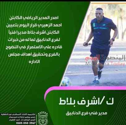 أصدر احمد الزهيري المدير الإداري لنادي الاتحاد السكندري العريق تعيين ابن المنصورة كابتن أشرف بلاط مديرا لفرع الدنابيق لما له من خبرات قادرة علي الاستمرار في النضوج بالفرع وتحقيق أهداف مجلس الإدارة.