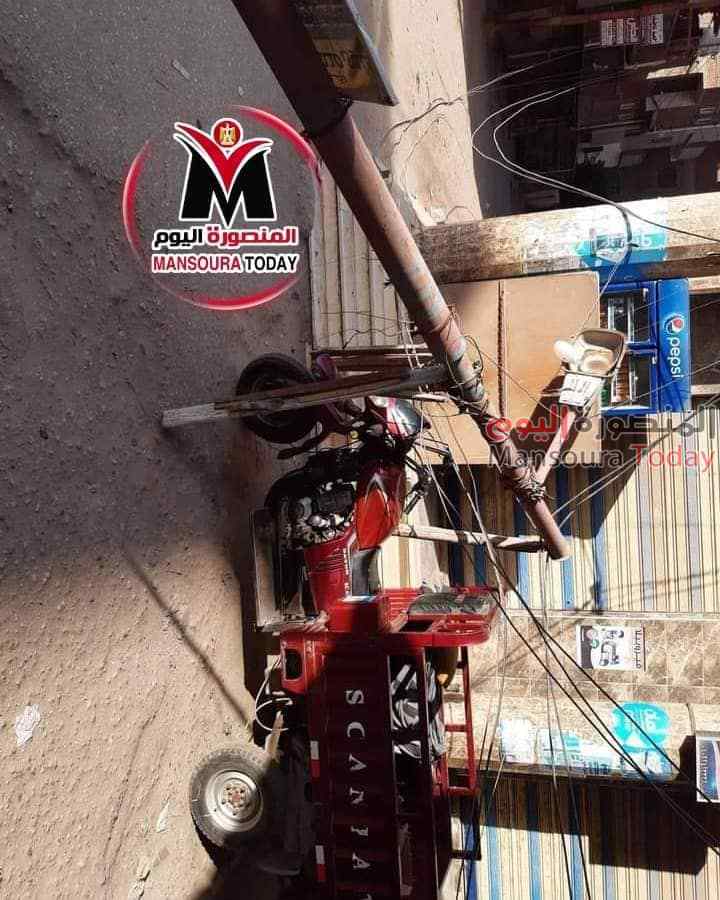 نجا أهالي قرية ميت عنتر مركز طلخا بمحافظة الدقهلية من كارثة مروعة حين سقط عمود كهرباء على المارين فى الطريق أمام احد محلات السوبر ماركت.