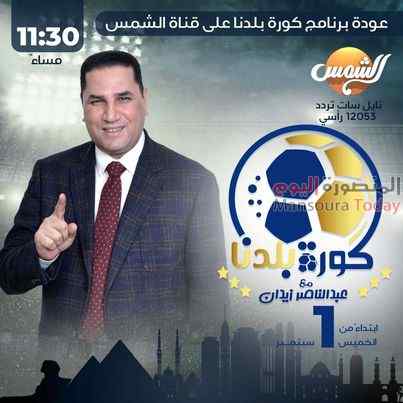 عاد برنامج” كورة بلدنا ” للاعلامي عبد الناصر زيدان للظهور من جديد ،من خلال ع قناة الشمس الفضائية حيث يظهر البرنامج في نسخته الرابعه بلون وشكل مختلف على مدار يومي الخميس والجمعه من كل أسبوع في تمام الحادية عشرة ونصف مساء . يقوم البرنامج بتغطية دوري الممتاز ب والدرجة الثالثه والدرجة الرابعة مع الإهتمام بدوري مراكز الشباب وكل القضايا التي تهم الأندية الشعبية والجماهيرية في كل ربوع مصر، والبرنامج يذاع مباشرة علي قناة الشمس وجميع المنصات عبر الفيس بوك واليوتيوب الحلقة الأولي اذيعت مساء أمس الخميس وشهدت العديد من المفاجآت،واهمها اتصال مع والدة وشقيقة الإعلامي عبد الناصر زيدان،واتصال مع الدكتور أشرف صبحي وزير الشباب والرياضة ،والاستاذ جمال علام رئيس الاتحاد المصري لكرة القدم ،عمرو عبدالحق رئيس نادي النصر القاهرى ،مجدي الشيخ رئيس لجنة المسابقات بالقسم الثاني ،هاني امان رئيس نادي استرن كمباني.وليد هويدي المشرف العام على الكرة بنادي مصر المقاصه. وقد صرح عبد الناصر زيدان قائلا “سأبذل قصارى جهدي لتقديم رؤية اعلامية رياضية مختلة من أجل أندية الغلابه والجماهير التي تثق بنا ” وقد استطلعت المنصورة اليوم آراء جماهير المنصورة في عودة البرنامج حيث أكد خالد عبد الغني انه يشاهد البرنامج منذ كان يذاع علي قناة الحدث ويعشق الاعلامي عبد الناصر زيدان. بينما يري السيد محمود أن عودة البرنامج اضافة قوية للبرامج الرياضية بالقنوات الفضائية لتناوله دورى المظاليم. اما عصام محمود فيري ان سر نجاح البرنامج طوال السنوات الماضية هو وقوفه ومساندته لاندية الأقسام الثانيه والثالثه والرابعة.