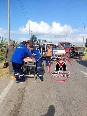 بوقوع حادث تصادم بين ميكروباص وسيارة نقل علي طريق شربين مما ادي لإصابة عشرة اشخاص .