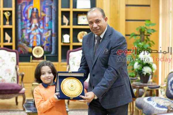 ومنح رئيس الجامعة الطفل المعجزه درع الجامعة بالاضافة الى شهادة تقدير له تقديراً على تميزه وفوزه المشرف فى البطولة والتى رفع خلالها اسم مصر عاليا .