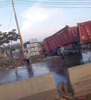 شهد طريق المنصورة جمصة في محافظة الدقهلية حادث تصادم بين جرار زراعي وسيارة نقل امام قرية القطنة .
