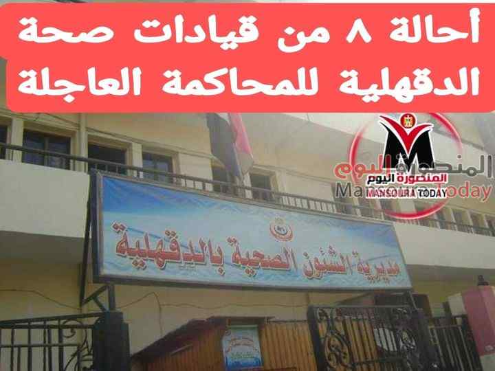 أمرت النيابة الإدارية، بإحالة ثمانية من القيادات والمختصين بمديرية الصحة بالدقهلية للمحاكمة العاجلة، وهم كلٍ من: