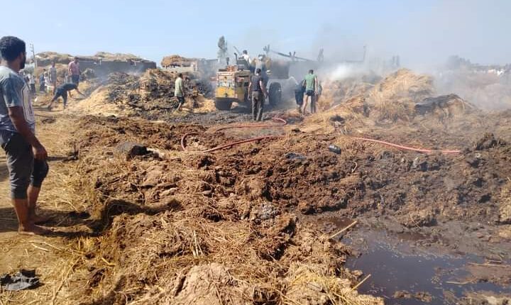 نشب حريق ضخم في حظيرة مواشي بمدينة الجمالية بمحافظة الدقهلية