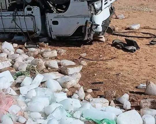 اصطدام سيارة جامبو بسيارة ربع نقل محملة بالعمال عند الكساره علي الطريق الدولي الساحلي قرب جمصه.
