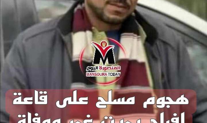 وقد تلقى مدير امن الدقهلية إخطارا من شرطة النجدة يفيد بقيام ملثمين يستقلون دراجة نارية بإطلاق الرصاص على قاعة أفراح ووفاة شخص إصابة إثنين آخرين .