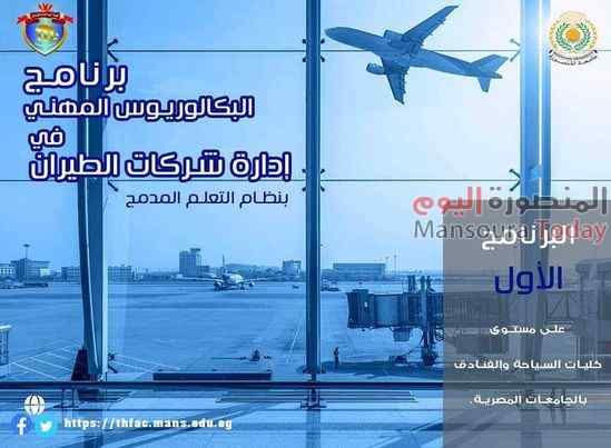 كلية السياحة والفنادق جامعة المنصورة بقيادة الاستاذ الدكتور / محمد عبد اللطيف عميد الكلية دائما تسعي الي تطوير برامجها التعليمية والبحثية وذلك لتأهيل الخريجين بها لمنافسة سوق العمل بما يتناسب مع احتياجات سوق العمل تبعا للتطورات الحديثة والمشاركة المجتمعية والتمويل الذاتي للكلية بتطوير برامجها ومن أهمها برنامج البكالوريس المهني في إدارة شركات الطيران بنظام التعليم المدمج. الشروط المطلوبة للقبول بالبرنامج وفقا للموقع الرسمي لكلية السياحة والفنادق كالآتي: أن يكون الطالب حاصلًا على درجة البكالوريوس أو الليسانس بعد حصوله على المؤهل بدون فاصل زمني أو حاصلًا على مؤهل فوق المتوسط نظام العامين «الثانوية العامة + معهد سنتين» دون وجود فاصل زمني أو أنّ يكون حاصلًا على الثانوية العامة أو ما يعادلها من المؤهلات المتوسطة بعد مرور عامين على الأقل من تاريخ الحصول على المؤهل وفقا لقواعد المجلس الأعلى للجامعات. يستثنى من شرط المدد سالفة الذكر الطلاب المصريين المقيمين بالخارج الحاصلين على الشهادة الثانوية العامة أو مايعادلها بشرط وجود إقامة سارية وأيضا أبناء أبناء شمال وجنوب سيناء أن يتقدم الطالب إلى مركز التعلم المدمج بكلية السياحة والفنادق جامعة المنصورة يعتمد التعليم المدمج في البرنامج على حرية الطالب في اختيار المقررات الدراسية مما يحقق المرونة والتعلم الذاتي والتعليم عن بعد من خلال اعتماد الطالب على قدراته مستعينا ببعض الوسائل التي تتناسب مع هذا النوع من التعلم ومنها: شبكة المعلومات العالمية الفيديو كونفرانس التدريب الميداني المراجع والمقررات الالكترونية يعد برنامج البكالوريس المهني في إدارة شركات الطيران بنظام التعليم المدمج، البرنامج الأول على مستوى كليات السياحة والفنادق بالجامعات المصرية ويفتح أبواب سوق العمل أمام الخريج مثل: شركات الطيران «حجز وبيع تذاكر الطيران تسويق خدمات الطيران، خدمة العملاء، إدارة شركات الطيران». المطارات «العمل بفروع شركات السياحة، العمل بفروع شركات الطيران، العمل في مجال العلاقات العامة، شركات السياحة ووكالات السفر». شركات السياحة ووكالات السفر «حجز وبيع تذاكر الطيران». نظام الدراسة بالبرنامج يعتمد على نظام الساعات المعتمدة المطلوبة من كل طالب موزعة على عامين بواقع 72 ساعة.