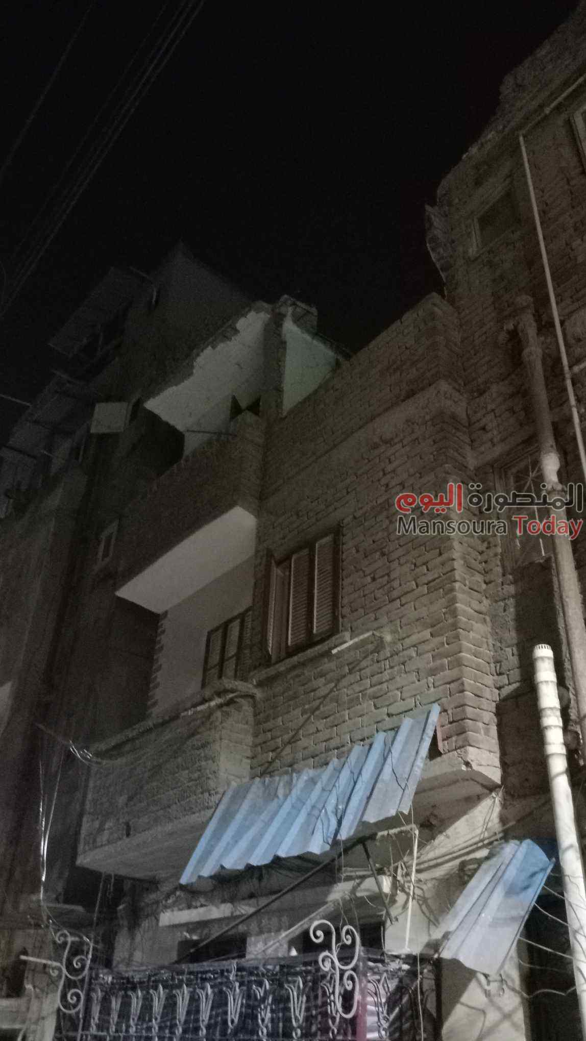 انهار اجزاء من الطابق الثالث باحد المنازل القديمة بمدينة المنصورة في ساعة متأخرة من مساء الأربعاء.