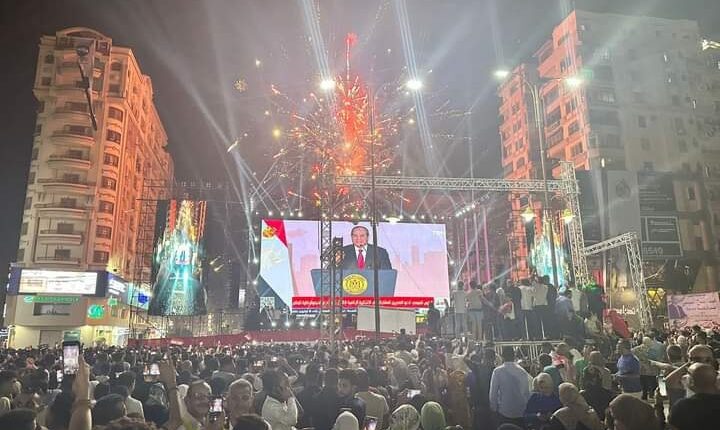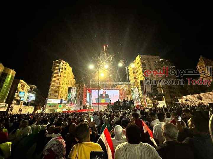 ميدان المحافظة بالمنصورة يستقبل الاف المواطنين للاحتفال بنصر اكتوبر