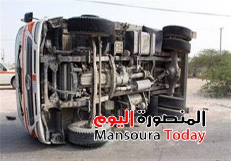 أصيبت 6 سيدات بإصابات مختلفة فى حادث انقلاب سيارة ميكروباص على طريق ميت غمر المنصورة أمام قرية بشلا التابعة لدائرة المركز .