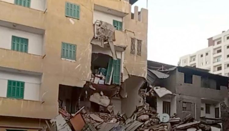 انهيار عقار وتضرر اثنين مجاورين بمنطقة عزبة الشال في المنصورة