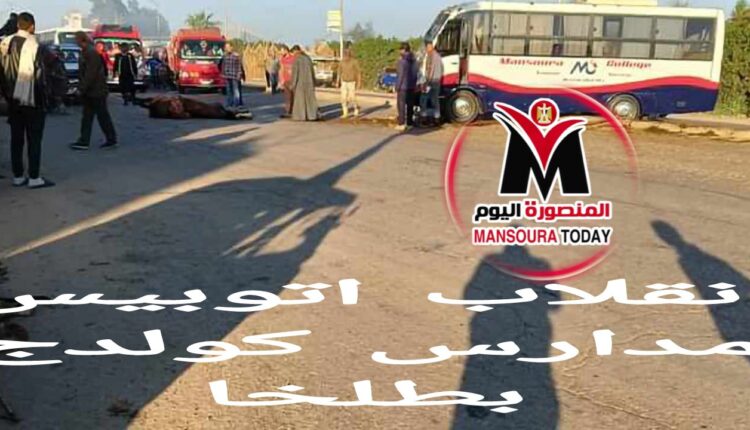 حادث انقلاب اتوبيس طلبة مدارس كولدج بعد تصادمه بعربة كارلوا الحادث على طريق المنصورة #طلخا المحلة السريع أمام مدارس رويال