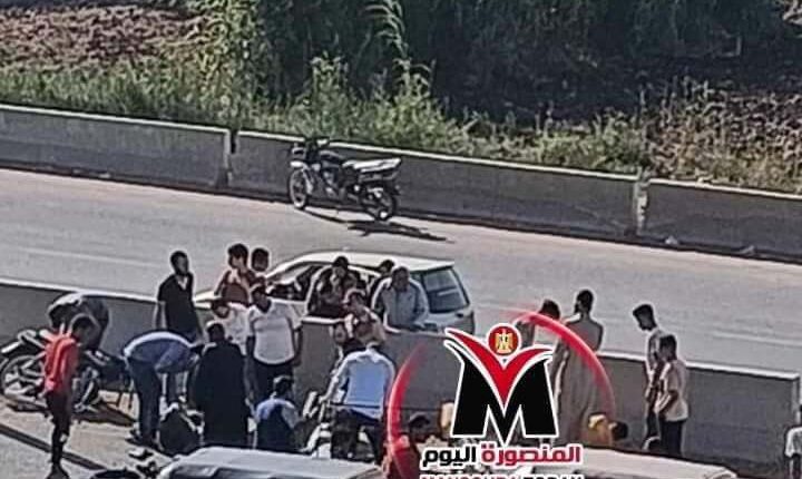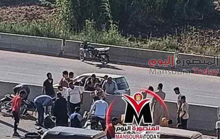 وقع تصادم بين دارجة بخارية (موتوسيكل ) بأخري امام كوبرى جديلة بمدينة المنصورة بمحافظة الدقهلية.